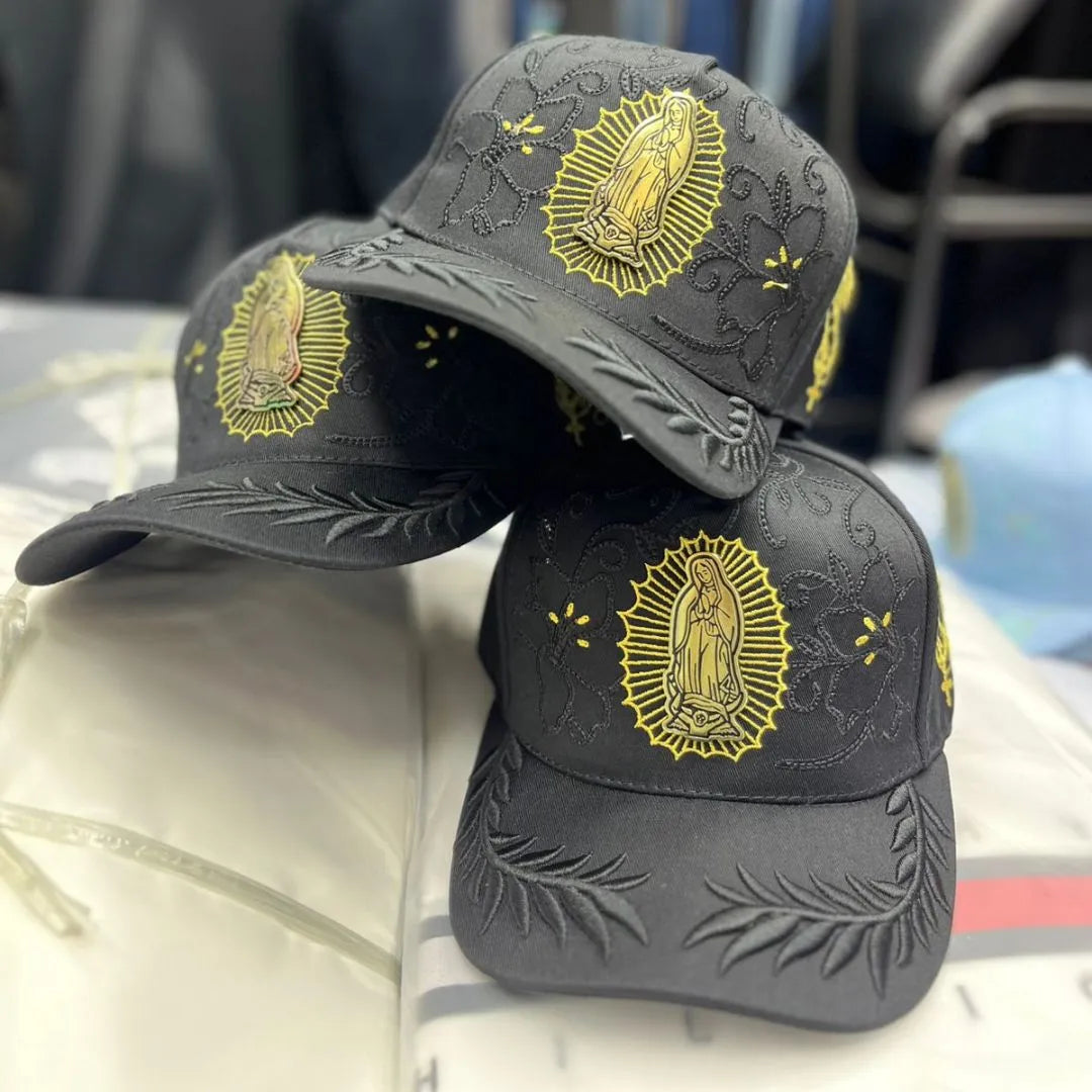 ✅ Bordado: Detalle de la Virgen de Guadalupe en tono dorado.